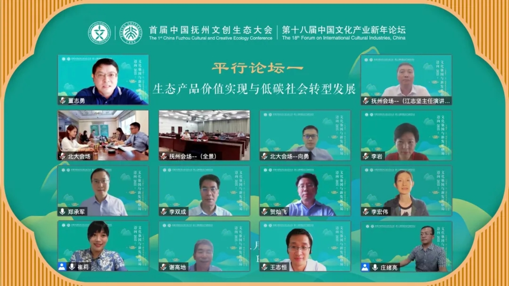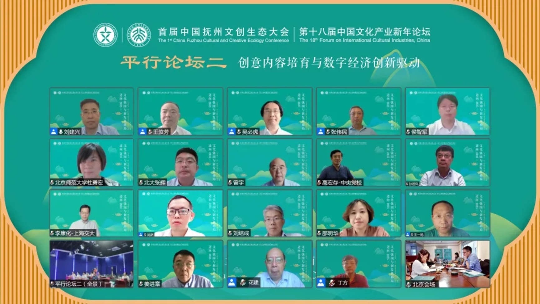 2021年8月16日至17日,2021首届中国抚州文创生态大会暨第十八届中国文化产业新年论坛以线上会场、北京大学、江西抚州线下分会场连线联动的方式举行。从新春至孟秋,文化和旅游产业主管部门负责同志、国内外知名专家学者和业界精英于八月盛日聚首云端,共赴一场被疫情延宕的新年之约。