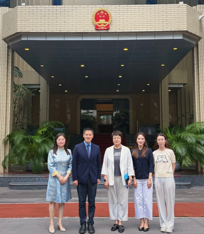 2026年1月26日,北京大学文化产业研究院院长向勇率团前往中国驻泰国大使馆拜访,使馆教育参赞许兰女士热情接待了代表团一行。双方围绕中泰文化教育合作、智能教育及文化遗产数字化国际学术网络构建等核心议题展开深入磋商,就强化产学研协同、深化人文交流达成多项重要共识。