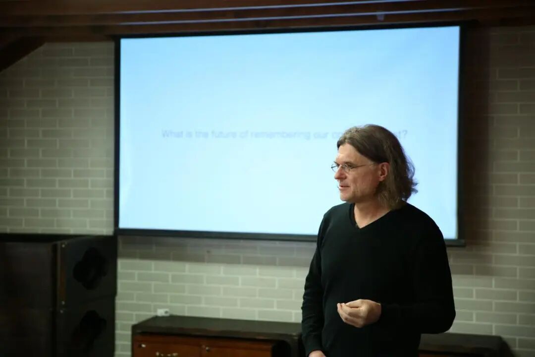 在观众互动环节,现场师生及访问学者围绕集体记忆、VR叙事与技术文化价值等议题踊跃提问。有学生关注VR体验中用户无法改变历史事实的无力感是否可能引发心理创伤,Tim Gruenewald回应指出,警示机制在流媒体平台已十分常见,并在VR语境中具有重要现实意义。对“集体记忆构建中的能动性与受动性”问题,他表示,集体记忆的构建从来不是完全自发的,学校教育、政治宣传、纪念碑叙事等往往自上而下施加影响。VR体验中的“能动性”更多是一种幻觉,其真正意义在于帮助创作者更有效地传递故事,激发观众有意识地反思既定叙事。此外,有学者就“香港九龙城寨VR项目”的文化价值提问,Tim Gruenewald指出,此类项目的价值在于保存“活的记忆”,避免表面化的关键在于让社区参与创作,而非由开发商单方面主导。