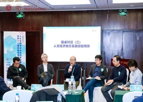 在“人文经济地方实践经验观察”圆桌对话中,中国文化报社品牌塑造部主任李琤主持。国家行政学院中共中央党校祁述裕教授就人文经济中的认知变化作主旨发言。随后,杭州良渚遗址管理区管委会文化产业局局长陈道亮、芒夏(杭州)农文旅发展有限公司副总经理蒋琛、浙江文化空间发展有限公司副总经理陈雄,分别就良渚文化活化、农文旅IP“种地星球”打造、省级文化中心一体化商业运营等创新实践进行了分享。
