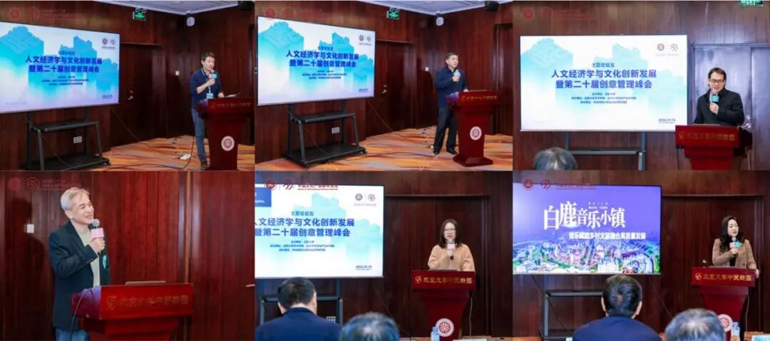 在“人文经济学理论辨析”环节,由中央财经大学文化与传媒学院戴俊骋教授主持。新华社研究院院长刘刚强调,人文经济学应坚持以人为中心,文化发展要因地制宜;山东财经大学校长洪俊杰指出,需加强实证研究,推动文化软实力转化为经济硬支撑;苏州大学期刊中心主任江波建议吸引多学科学者参与,完善理论体系;工业文化发展中心产业处副处长董温彦阐述工业精神传承与遗址利用的路径;成都香颂文化传播有限公司董事长巫平丽以白鹿音乐小镇为例,分享文化项目推动消费与融合的经验。