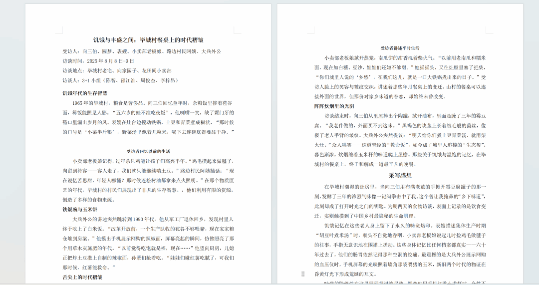 根据采访整理的口述史文本