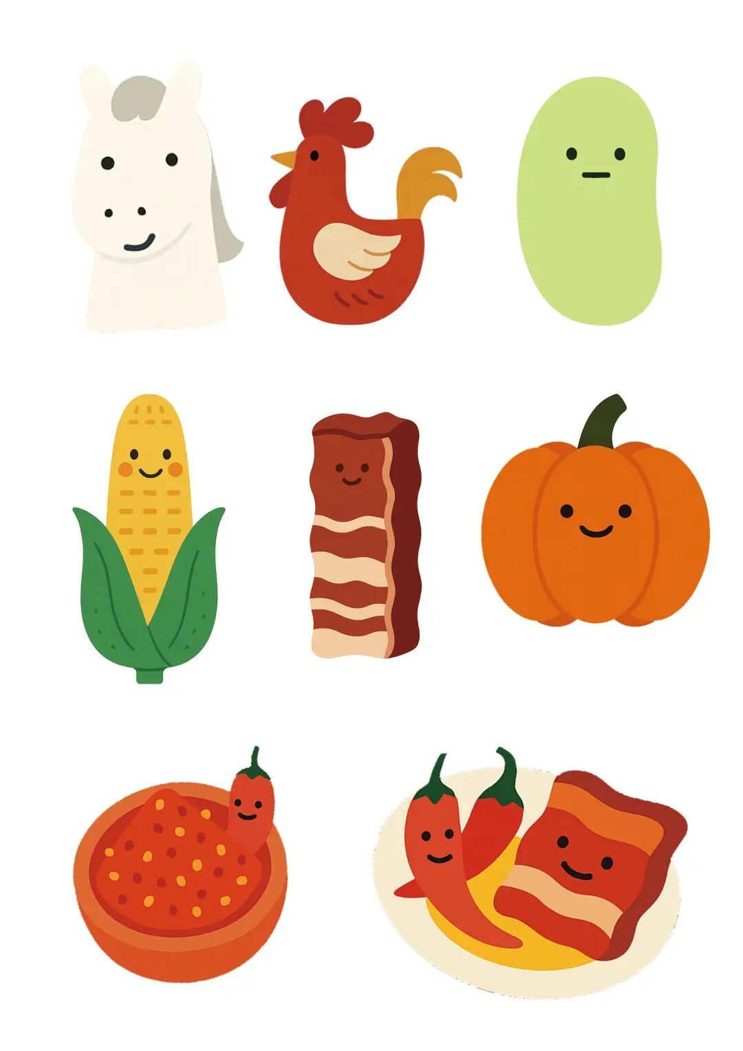 深入走访10余户村民,收集当地毕城村作物故事与食谱。完成5-7个食物IP形象的设计与衍生插画。