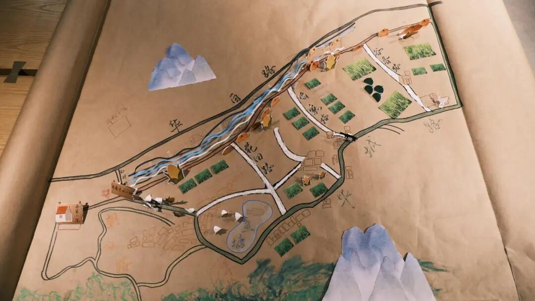 我们从最基础的动作开始——画地图。团队在村子里实地调研,拿着纸和笔,把道路、河流、田野、房屋一点点记录下来。经过几天的走访,我们终于绘制出一张长超过两米、宽超过一米的手绘地图。这份地图不仅仅标出了地名与路线,还细致地描绘了田间作物的分布、村民的居住区、河流的走向。