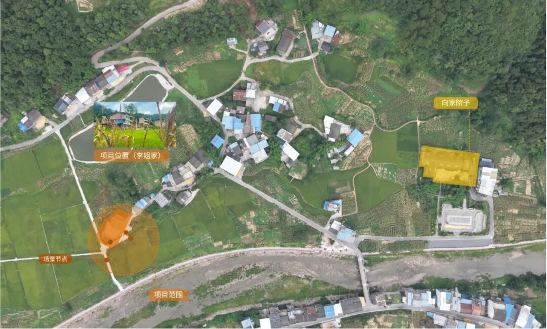 在这一框架下,本项目以院坝与“田字格”地貌为文化母体,提出把院坝从“路过的场所”变为“停下来的场域”。我们以“田字四口”重构空间网络,形成“吃—看—坐—晒”的场景组合,让村民与来客在可参与、可共创、可传播的场域中重新链接,从而复兴在地生活力。