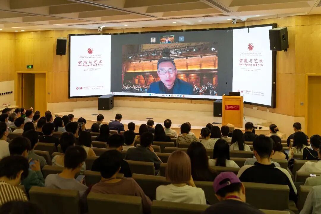 致辞之后,彭锋教授第一次公开介绍了北京大学计算艺术实验室的建设情况。北京大学计算艺术实验室由北京大学艺术学院牵头及相关科研机构协同建设,成立于2019年5月,是依托多学科优势,开展面向艺术创作、文化传播、教育教学等领域的交叉研究与应用探索的校级实验室。实验室以“技术驱动+文化引领”为核心理念,推动人工智能赋能中华优秀传统文化的创新表达、传播与应用。实验室聚焦中华艺术资源的数字化整理、智能化理解与生成式创作,探索科技与艺术深度融合的实践路径。