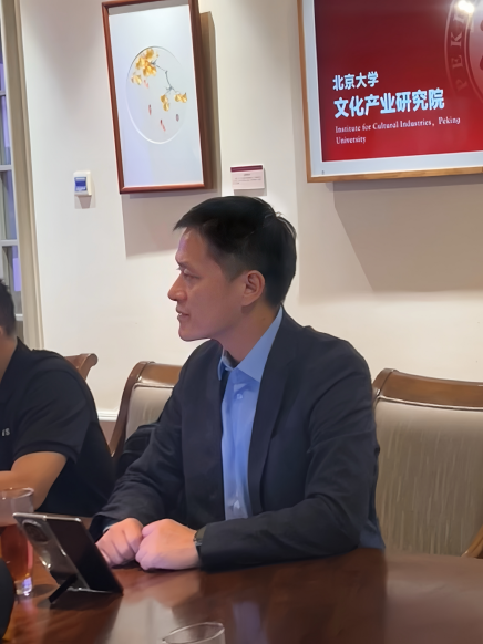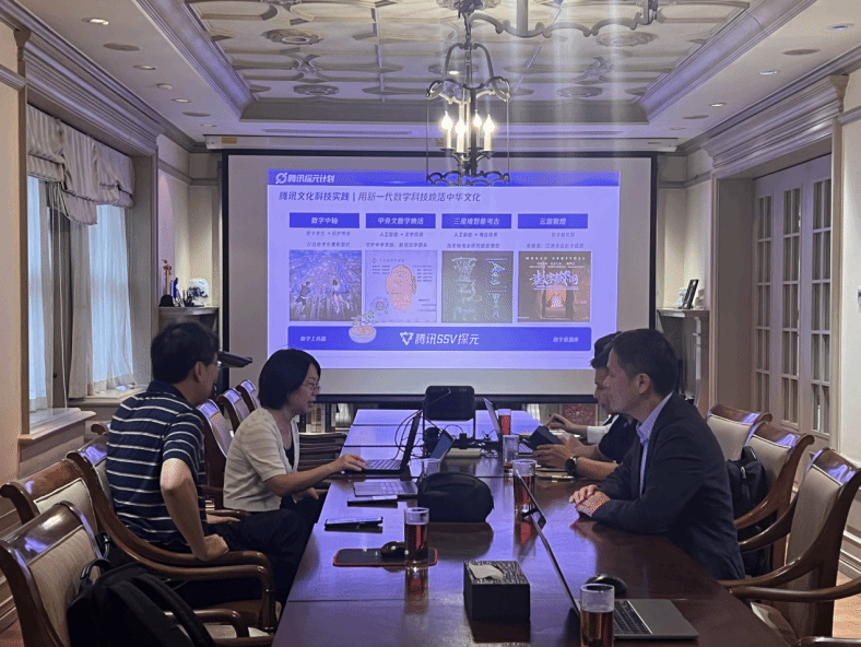 2025年8月27日,腾讯团队到访北京大学文化产业研究院,双方就协同推进腾讯“2025年探元计划”举行专项合作会议。会议聚焦人工智能等前沿科技在文化遗产保护与创新中的应用,围绕年度目标、重点赛道布局与产学研协同机制等核心议题展开深入交流,为新阶段文化数字化战略的实施厘清路径、凝聚共识。出席会议的有腾讯SSV数字文化实验室首席架构师王朝阳、腾讯研究院社会价值创新中心副主任孙怡,北京大学文化产业研究院院长助理钮沭联、学术交流部赵卫丽、艺术学院博士后张亚欧参会。会议由北京大学文化产业研究院院长向勇主持。