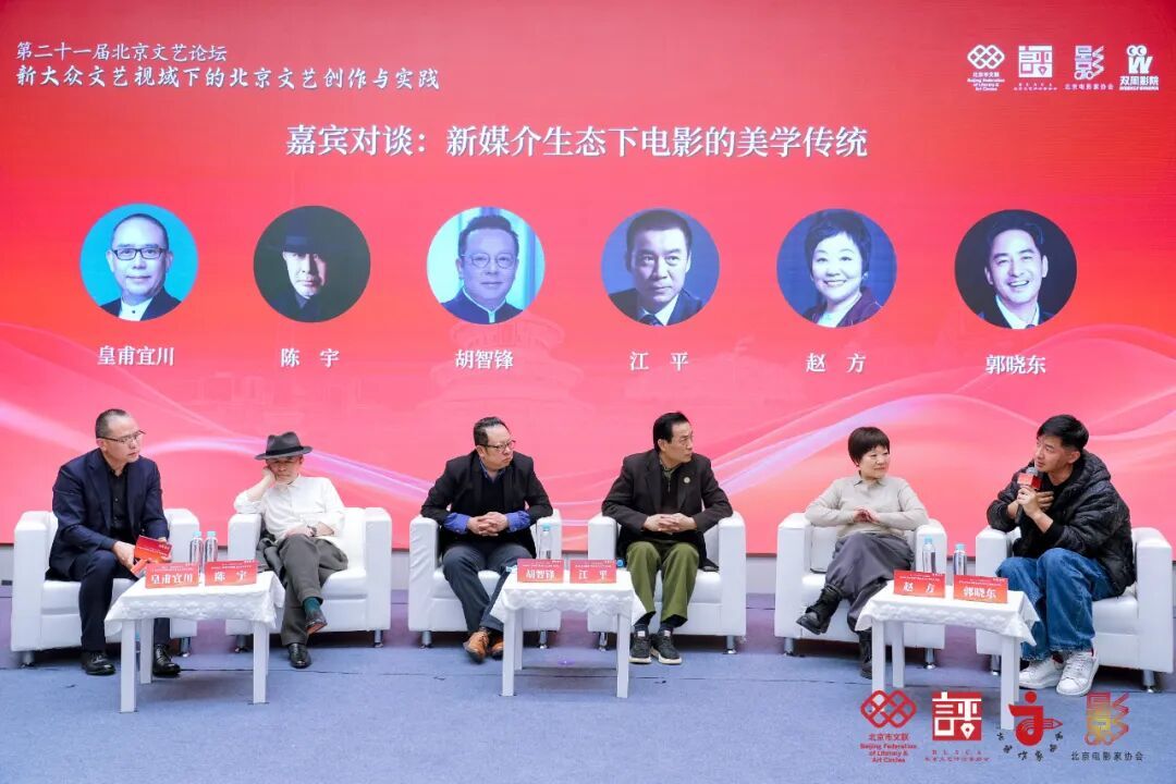 在“新媒介生态下电影的美学传统”单元,中国电影艺术研究中心研究员、《当代电影》杂志社长兼主编、《当代动画》杂志主编皇甫宜川表示,中国电影美学传统是在漫长的发展过程中吸收了诸多传统艺术建立起来的,呈现形式丰富。中国评协副主席、视听艺术专委会主任,北京评协副主席,北京师范大学艺术与传媒学院院长、教授胡智锋表示中国电影最重要的传统是现实主义传统,变化的是时代性特质,不变的是为社会带来真实有力的认知与审美引领。中影集团国家一级导演江平表示,中国电影核心美学是现实主义,如果不从人民中来到人民中去,就不会有现实主义题材的优秀作品出现在荧幕上。北京大学艺术学院教授、编剧、导演陈宇表示,应把镜头对准不完美的生活和不完美的人,创作要扎根在普通民众的生活之中。演员郭晓东表示,扎根生活是对创作者最基础的要求,生活细节决定人物性格特征,要用眼观察生活,用脑思考生活,用笔记录生活,用阅读让生活更加多元。爱奇艺高级副总裁赵方表示,中国电影要坚持中国审美,“话已尽而意不止”,希望制作的电影能让观众在离开影院时,回想其为现实生活带来的帮助和意义。