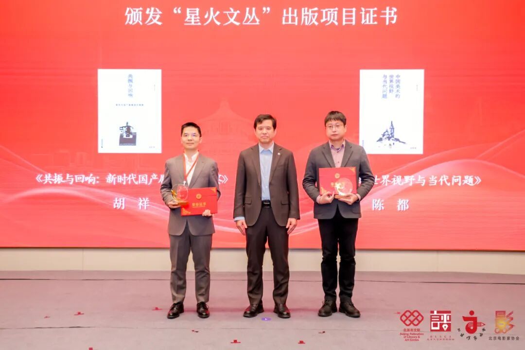 论坛期间,举办了北京文艺评论年度推优和“星火文丛”出版资助项目表彰活动。徐粤春为“星火文丛”出版资助作者胡祥、陈都颁发证书和奖杯。王一川为北京文艺评论年度推优活动优秀著作代表唐昆、曹书乐、帕孜丽娅·阿力木颁发证书;唐东平、蒋慧明为北京文艺评论年度推优活动优秀长评文章代表樊迎春、傅逸尘、李松睿、张鹏禹、杨天东、张阳等作者颁发证书;徐秋为北京文艺评论年度推优活动优秀短评文章代表卫如珍、林洁、包磊等作者颁发证书。此外,还发布了北京市文联基础理论课题重点项目——《2024北京文艺发展报告》,马新明、王一川、马驰共同为《报告》揭幕。