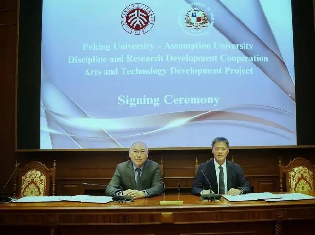 8月20日,北京大学与泰国易三仓大学“艺术与科技发展基金”签约仪式在泰国曼谷举行。此次合作由北京大学文化产业研究院与易三仓大学共同发起,旨在推动数字文化创意、人工智能应用及乡村可持续发展等前沿领域的深度合作与跨学科创新。北京大学文化产业研究院院长向勇教授、易三仓大学校长委员会及师生代表出席签约仪式。